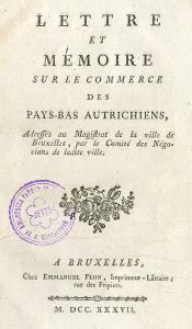 LE PREMIER LIVRE DE madame de STAEL.- LETTRE ET MÉMOIRE sur le commerce des Pays-Bas autrichiens, adressés au Magistrat de la ville de Bruxelles, par le Comité des Négocians de ladite ville. Bruxelles, Emmanuel Flon, 1737,