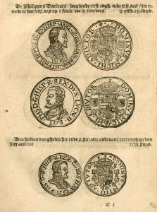 -Suivi de : Placcaet ende ordinantie van hunne hoocheden, nopenden het herkundighen ende onderhouden van hunne voorgaende ordinantien uytghegheven opt stuck vander evaluatie ende loop van de munten soo gout als silvere. Bruessel, Rutgeert Velpius, 1603, petit 4°, [8] p.