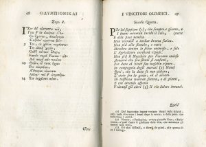 PINDARE.- [Titre en grec]. Vincitori olimpici di Pindaro tradotti in italiane canzoni ed illustrati con postille da Gianbatista Gautier. Roma, Nella stamperia del Komarek, 1766,