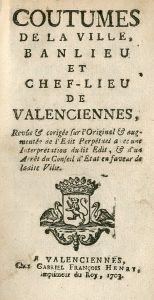 VALENCIENNES.- COUTUMES DE LA VILLE, BANLIEU ET CHEF-LIEU de Valenciennes, revûe et corigée [sic] sur l'original et augmentée de l'Édit perpétuel avec une interprétation dudit Édit, et d'un arrêt du Conseil d'État en faveur de ladite ville....