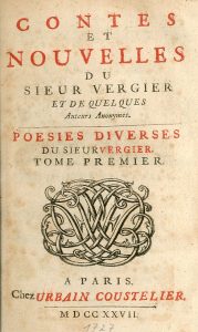 L'ANACRÉON FRANÇAIS.- VERGIER (Jacques). - Contes et nouvelles du sieur Vergier et de quelques auteurs anonymes. Poésies diverses du sieur Vergier. Paris, Urbain Coustelier, 1727,