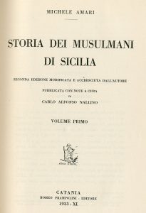 AMARI (Michele). Storia dei Musulmani di Sicilia. Seconda edizione modificata e accresciuta dall'autore. Pubblicata con note a cura di Carlo Alfonso Nallino. Catania, Romeo Prampolini, 1933-1939,
