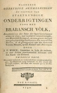 BRABANT.- VONCK (J.F.). Naerdere onzeydige aenmerkingen of vervolg van staetkundige onderrigtingen voor het Brabansch volk [...]. Tweeden druk. Ryssel [Lille], sans édit., 1792,