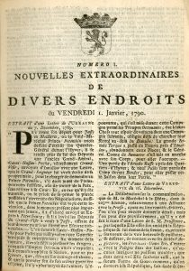 « GAZETTE DE LEYDE », f. de titre (« Gazette de Leyde ou Nouvelles extraordinaires de divers endroits » ; année et nom d'auteur ajoutés à la main : 1790, Étienne Luzac), année 1790 complète du n° 1, 1er janvier au n° 105, 31 décembre...