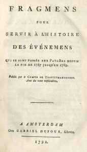 TRAUTTMANSDORFF (Comte de). Fragmens pour servir à l'histoire des événemens qui se sont passés aux Pays-Bas depuis la fin de 1787 jusqu'en 1789. Amsterdam, Gabriel Dufour, 1792,