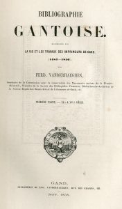 VANDERHAEGHEN (F.). Bibliographie gantoise. Recherches sur la vie et les travaux des imprimeurs de Gand (1483-1850). Gand, Eugène Vanderhaeghen, 1858-1869,