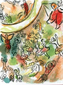 4°, 90 p., orné d'une lithographie originale en coul. de Chagall en front., 5 lithographies en coul. d'interprétation par Charles Sorlier tirées par Mourlot, des ill. en noir, des photos par Jean Dubout et Izis Bidermanas et 1 planche dépliante représentant la maquette du plafond, toile édit., jaq.