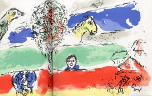 Bien complet de la lithographie originale de Marc Chagall à double page "Le Fleuve vert" (1974).