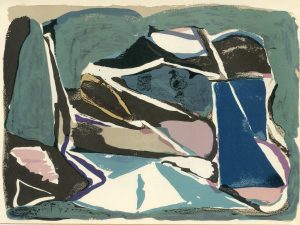in-folio, 1 f. dépl., couv. illustrée. Texte de Georges Duthuit. Complet des 2 lithographies originales en couleurs de Bram Van Velde.