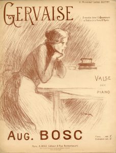 STEINLEN (Théophile-Alexandre). "Gervaise". Valse pour piano. Partition illustrée en lithographie par Steinlen. P., Aug. Bosc, 1943,