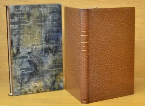 in-12, plein maroquin brun, dos lisse, auteur, titre et date dorés, filet doré sur les coupes et les coiffes, contreplats en maroquin bleu nuit, gardes en soie moirée bleue, tranches dorées, couv. et dos cons., étui gainé et bordé de même (reliure signée Colette Bertin).