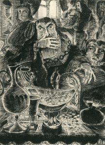 MOHLER.- JONSON (Ben). Volpone ou Le Renard. Adaptation en 9 tableaux de Paul Achard. Cuivres gravés par Jean Mohler (9 bandeaux et 14 compositions h. t. en noir). P., Edit. de la Nouvelle France, 1945,