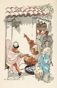 TOUCHET.-PLAUTE. La Farce de la marmite. Ill. de Jacques Touchet (aquarelles reproduites au pochoir). P., Emile Chamontin, 1946,