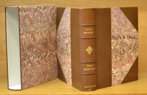 8°, 414 p., demi-maroquin brun à coins, dos à 4 nerfs, auteur, titre, millésime, fleuron et tête dorés, couv. et dos cons., étui bordé (reliure de F. Dupont). Tiré à 1075 ex. num. 1/52 Japon, celui-ci enrichi d'un dessin original (croquis annoté au crayon), 1 suite sur Chine et de 3 petites gravures en tête de volume. Bel exemplaire.