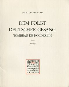 CHOLODENKO (Marc). Dem Folgt deutscher Gesang. Tombeau de Hölderlin. Poèmes. P., Hachette, "Littérature", 1979,