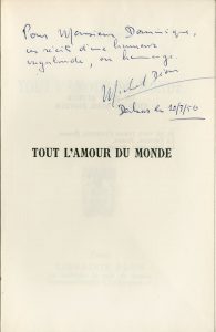 DEON (Michel). Tout l'amour du monde. P., Plon, 1955,