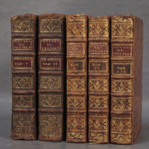 • VERGIER. Œuvres diverses. Amsterdam, N. E. Lucas, 1731 ; 4 tomes en 2 vol. in-12, veau brun, dos à nerfs ornés, pièces de titre et de tomaison rouges, [Rel. de l'époque], un peu frottée.