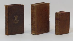 3 parties en un vol. in-12, veau brun granité, monogramme doré sur les plats, dos à nerfs orné de motifs et fleurs de lys dorés, [Rel. de l'époque], frottée, accrocs au dos.