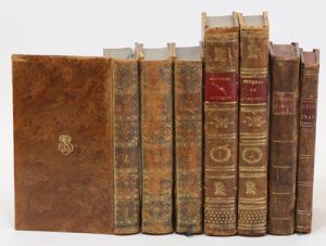 • SOUQUET DE LA TOUR. Œuvres complettes de Claudien. Paris, A. J. Dugour, Floréal an VI ; 2 vol. in-8, basane racinée, dos long orné de motifs dorés, pièce de titre rouge, [Rel. de l'époque], frottée.