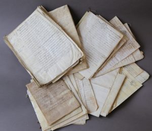 On y trouve notamment une nomination d’archer garde (1747), des contrats (1572, 1610, 1787), des actes de vente (1629, 1661, 1755), contrats de mariage (1680, 1748), quittances, etc.