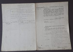 [TROYES].— DANTON (Jacques). Pièce imprimée et manuscrite signée. , . Interrogatoire de 4 pages imprimées et manuscrites, établi le 25 ventôse an 11 [16 mars 1803].