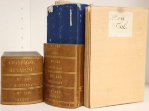 5 cartes repliées au format in-8 (13x20 cm), réunies sous livre-boîte plein maroquin à grain long, triple filet doré en encadrement sur les plats, dos lisse, titre doré, [Rel. du XIXe s.].