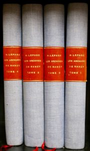 LEPAGE (Henri). Les Archives de Nancy ou documents inédits relatifs à l'histoire de cette ville. Publiés sous le patronage de l'administration municipale. Nancy, Lucien Wiener, 1865 ;