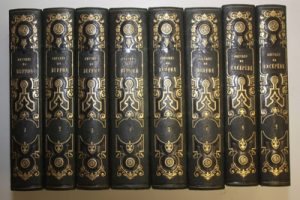 8 vol. grand in-8, demi-chagrin vert anglais, dos lisse orné d'un très beau décor en long de fers romantiques dorés et à froid, [Rel. de l'époque].
