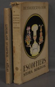 • ESCOFFIER. Husmoderns bok. Escoffiers Kokbok. Del I. Stockholm, Ahlen & Akerlunds förlag, 1927 ; in-8, cartonnage d'éditeur illustré. Tome premier seul ; cartonnage un peu défraîchi.