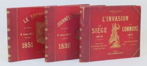 Le second Empire. (2 décembre 1851-4 septembre 1870).— L’invasion. Le Siège, 1870. La Commune, 1871. D'après des peintures, sculptures, dessins, lithographies, médailles, autographes, objets… du temps. Paris, Ernest Flammarion, [vers 1900] ; 3 vol. in-4 oblong, demi-chagrin rouge à coins, plats de percaline de même couleur, plat supérieur orné d’un large titre illustré doré, tête dorée, [Rel. de l'éditeur], coins et mors un peu frottés.