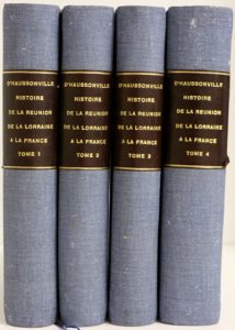 HAUSSONVILLE (comte d'). Histoire de la réunion de la Lorraine à la France. Avec notes, pièces justificatives et documents historiques. Paris, Michel Lévy, 1854-1859 ;