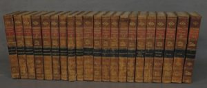 21 vol. in-8, demi-basane fauve, dos longs ornés de motifs dorés, pièces de titre rouges et noires, [Rel. de l'époque], mors fendus, accrocs aux coiffes.