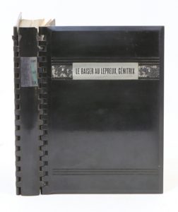 pet. in-8, plats rigides de bakelite noire, sur le premier décor Art Déco gravé et plaque métallique portant le titre, dos long monté par des charnières piano, pièce de titre métallique, tête dorée, [Reliure JOTAU, breveté S.G.D.G.].