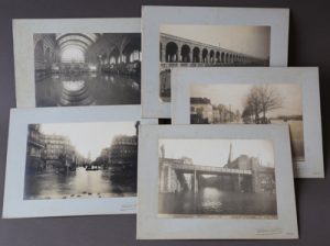 [PHOTOGRAPHIE]. Ensemble de 5 vues de la crue de 1910 à Paris. , . Intéressant ensemble de 5 tirages photographiques originaux légendés montrant la montée des eaux à Paris lors de la crue centennale de 1910.