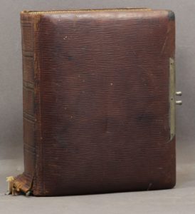 fort vol. in-12, maroquin à long grain acajou, dos long orné de nerfs simulés, tranches dorées, restes de fermoirs métalliques.