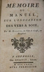 RIGAUD DE L'ISLE (Michel). Mémoire ou manuel sur l'éducation des vers à soie. Grenoble, Grabit, 1767 ;