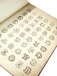 46 planches d’alphabets et de monogrammes montées sur onglet. Reliure très abimée.