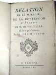 [SELIS (Nicolas Joseph)]. Relation de la maladie, de la confession et de la fin de Voltaire et de ce qui s’ensuivit, par moi, Joseph Dubois, Genève, 1761.