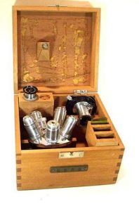 Optique allemande d’Ernst Leitz (1843-1920), dans un coffret en bois avec plaque en laiton du C.N.R.S.