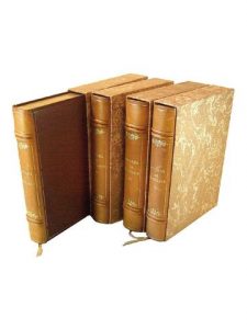 Reliure plein chagrin écrasé sous étui, dos orné de dorures, tête dorée, couvertures originales conservées, 4 volumes.