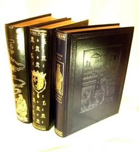Gd vol. rel. pl. cuir, reliure ornée à froid et dorures au dos, tête dorée. Exemplaire dit « de tête » imprimé en noir et or.