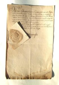[DUCHÉ de SAXE-WEIMAR]. Manuscrit signé du chancelier de la régence du Duché de Saxe-Weimar, H. von Oppenfeld (?), avec beau cachet de cire et daté du 25 octobre 1798.