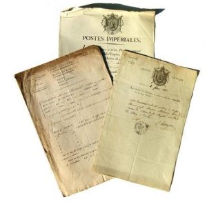 Le lot se compose d’une feuille de route à entête de la Grande armée délivré le 10 janvier 1807 pour se rendre de Francfort à Varsovie, d’un laissez-passer à entête de l’Empire français, cabinet du préfet, délivré le 2 août 1813 pour se rendre de Coblence à Dresde, un laissez-passer à entête des postes impériales délivré le 27 avril 1813 pour la route de Paris à Mayence.