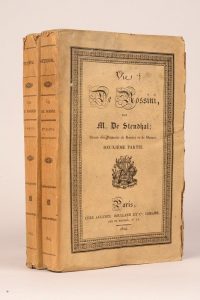 STENDHAL. Vie de Rossini. Paris, Auguste Boulland, 1824. 2 volumes in-8, broché, couverture imprimée, à toutes marges, chemises en demi-veau fauve avec coins orné de motifs géométriques au filet doré et étui modernes.