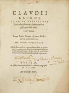 - GALIEN - Claudi Galeni Trium de naturalibus facultatibus librorum, deque earumdem substantia libri unius epitome. Ioanne Baiulio Pacuvio Apamaeo Medico autore atque interprete. Toulouse, Gui Boudeville 1554 (in fine : avril). Belle marque d’imprimeur gravée sur bois au verso du dernier feuillet. Suivi de : - Eorumque ab interprete in convertendis superioribus facultatibus naturalibus, ut esset Epitome locus, praetermissa sunt, libri tres, ibidem, idem, (in fine : mai), marque de l’imprimeur gravée sur bois sur le titre et au verso du dernier f. de texte imprimé (suivi d’une page manuscrite en latin, d’une écriture du XVI e siècle, sur l’interdiction d’utiliser des maléfices), 164 pp. pour le premier ouvrage, 54 pp. et 1 f. blanc pour le second en un vol. petit in-4 rel. ép. plein vélin, dos lisse (inscriptions peu lisibles - essais de signature - sur le premier plat). Mouillure claire sur plusieurs ff. et restauration angulaire sur un f. de garde, sinon bon exemplaire d’une édition toulousaine peu commune, bien complète de ses deux parties. Édition très rare de ce texte de Galien commenté par un médecin de Pamiers : le CCFr n’en localise qu’un seul exemplaire, à la Bibliothèque nationale de France. Provenances : nombreuses signatures « J. Benoist » sur une page de garde, d’une écriture du XVI e siècle ; ex-libris manuscrit « Ludovicus Rollandes Medicus » sur la page de titre.