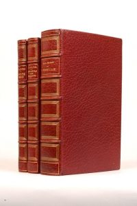 CHABROL (Jean-Pierre). La Chatte rouge. Paris, Gallimard, 1963. – Je t'aimerai sans vergogne. Ibid., id., 1967. – L'Embellie. Paris, Plon, 1968. Ensemble 3 volumes in-8, maroquin rouge, dos orné de quadruples filets dorés, filets dorés...