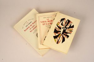 En avoir ou pas. Paris, Gallimard, 1945. In-12, cartonnage décoré. Édition originale de la traduction de Maurice Duhamel. Un des exemplaires reliés d'après la maquette de Mario Prassinos. # Le Vieil Homme et la mer. Paris, Gallimard, 1952. In-12, broché. Édition originale de la traduction de Jean Dutourd. Mention de trente-cinquième édition au titre. # Au-delà du fleuve et sous les arbres. Paris, Gallimard, 1965. In-8, broché, non coupé. Édition originale de la traduction de Paule de Beaumont. Un des 72 exemplaires sur vélin Lafuma-Navarre, seul grand papier, le n°1.