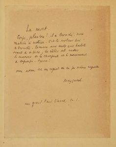 Édition originale, illustrée de 40 dessins reproduits en fac-similé de Max Jacob. # Tirage limité à 279 exemplaires numérotés, celui-ci sur Annam de Rives. # Exemplaire de Paul Éluard portant un poème autographe titré La Mort, signé par Max Jacob et dédicacé à Paul Éluard. Le poème est contrecollé sur une page de garde dans l'exemplaire. Ex-libris de Paul Éluard Après moi le sommeil, dessiné par Max Ernst.