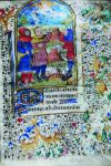 Il commence par le calendrier du mois d'avril (3 mois mq.). A partir du feuillet 150, il s'agit d'un texte français et latin plus tardif, en attente de ses lettres ornées. Au calendrier Saint-Urbain, Saint-Germain d'Auxerre, Saint-Martin de Tours et comme bien souvent Côme et Damien, Médard et Barnabé. Belles lettres ornées, bordures du type "mille fleurs". On pourrait s'orienter vers un atelier de la vallée de la Loire (longtemps conservé dans une famille de la Mayenne). Petit format 8x10 cm rédigé sur 14 lignes à la page. Subsistent six miniatures à pleine page. Crucifixion au feuillet 52. Nativité au feuillet 55. 3 bergers leurs moutons et ange phylactère au feuillet 62. Présentation de l'enfant aux docteurs du Temple feuillet 72. Ces quatre miniatures en état convenable. Au feuillet 81 (miniature effacée), au feuillet 88 le roi-David (bordure de droite délavée). Déjà mutilé au XVIIIème, on trouve l'indication "faict par moi, Jacques François Bouhours" qui pourrait être le restaurateur "maladroit" de l'ouvrage. Veuf de toute reliure, le velin s'est rétracté, cet état aggravé par des mouillures anciennes. La multiplicté des défauts amènent à souhaiter que l'acquéreur ait pu le prendre en main pour examen.