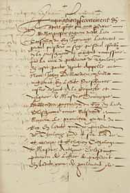 décembre 1592. Manuscrit en français sur papier, deux cahiers in-folio de 54 pp. et 22 pp. in-4, le premier signé « De Marquessac juge mage » et « De Meredieu » advocat général, avec deux sceaux plaqués sous papier, et une pièce sur une page de parchemin in-folio oblong, avec de nombreux détails donnés par les témoins (dont le maire de Périgueux, Raymond Girard de Langlade, ancien syndic des gens des Trois États de la province de Périgord) sur le comportement du nouveau président pendant les troubles des guerres de religion. Le président de Lestang y apparaît comme un ligueur intransigeant, « portant affection au party de la Saincte Union » et ayant suivi l’armée du Duc de Mayenne, après avoir fait partie de la maison du Chancelier de Birague en 1583-1584. Un des témoins, Messire Foucaud d’Aubusson, se présente comme lieutenant au pays de Périgord « sous l’autorité de Monseigneur le duc de Mayenne, lieutenant général pour l’estat royal et couronne de France ». Joint : Récusations pour consanguinité. Deux cahiers manuscrits en français sur papier, 8 pp. et 10 pp. in-folio, l’un du milieu du XVI e siècle (il y est question p. 8 de Michel du Faur (de Saint Jory), juge mage ; le second du début du dernier tiers du XVI e siècle, à la requête de Marguerite du Mayne d’Escandillat. Le dossier :